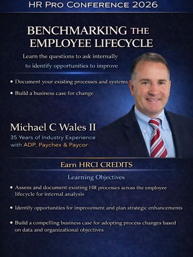 This session explores how HR professionals can benchmark the employee lifecycle to identify gaps, improve processes, and support organizational effectiveness. Participants will learn how to assess current systems, document workflows, and build a data-informed business case for changes that enhance employee experience and operational efficiency.